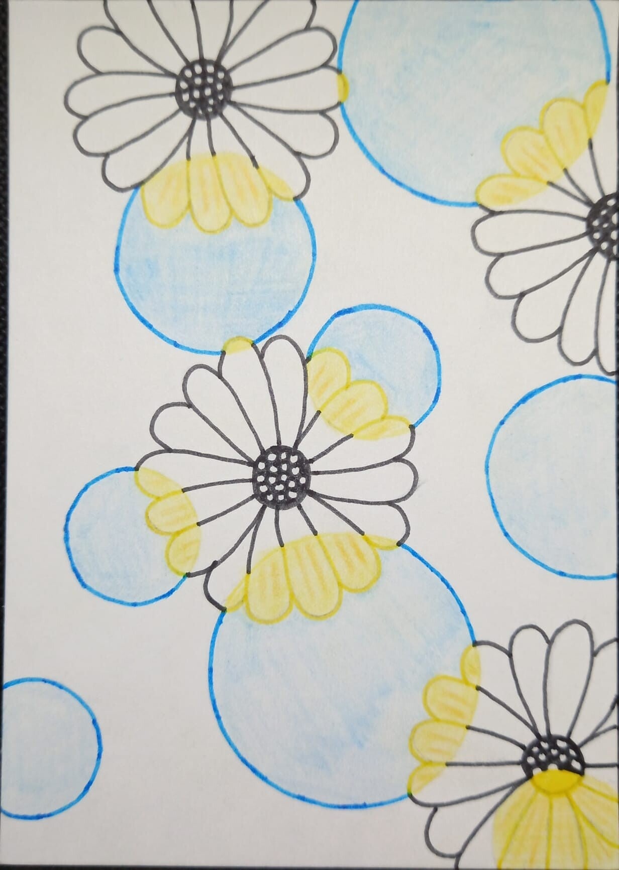 - Blauw met geel
